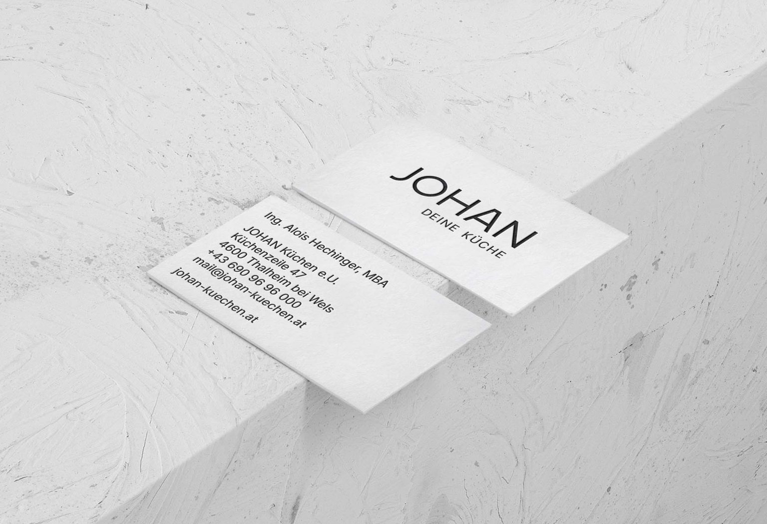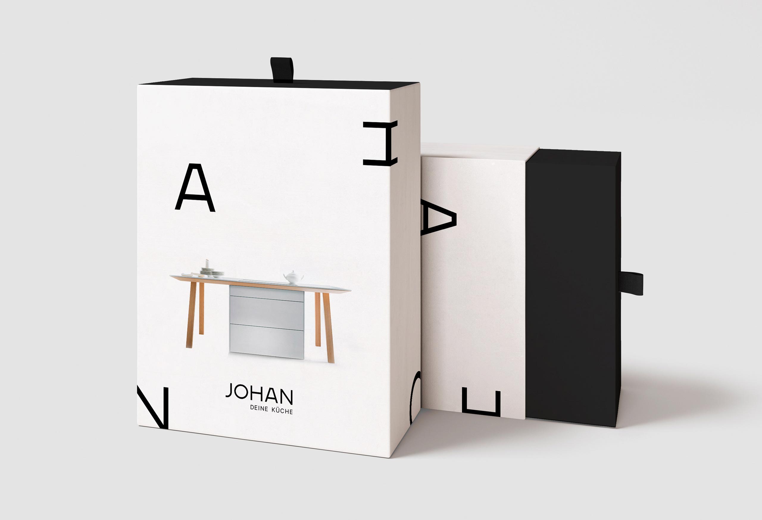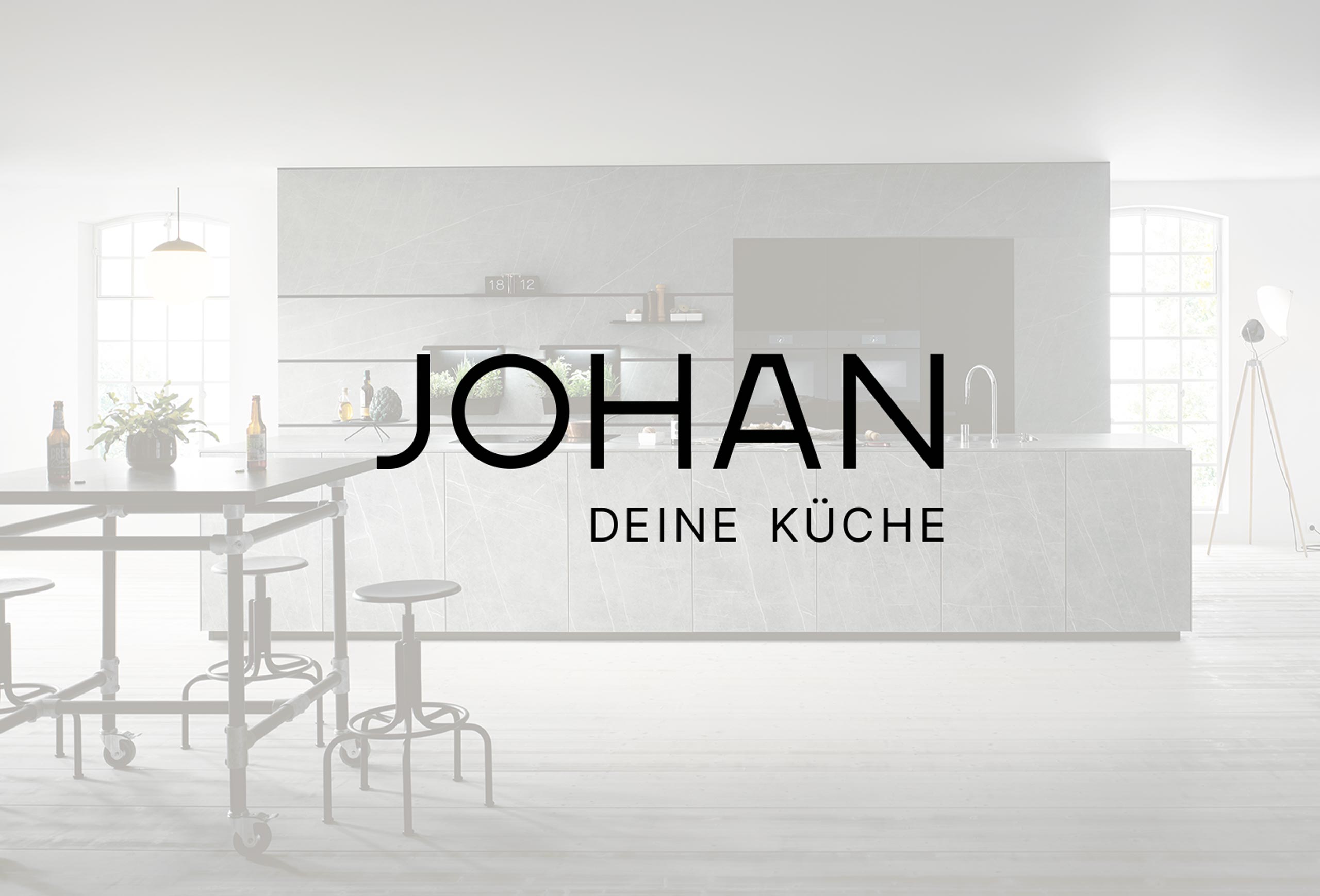 Die sparsame Eleganz griffen wir auf und ließen sie in die reduzierte Typografie einfließen, inspiriert von der „Frankfurter Küche“ der 1920er und vom Stil des Bauhaus. Auch der Claim kommt – den Namen harmonisch ergänzend – ohne Schnörkel aus: JOHAN – Deine Küche. Drei mal fünf Buchstaben, that’s it.
